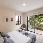Villa Ionion H32 med utsikt över trädgården erbjuder gästerna strykutrustning, strykjärn med strykbräda och luftkonditionering samt TV med satellitkanaler och plattskärms-TV med satellitkanaler. Förutom soffa har inredningen sten eldstad. Badrummen är utrustade med separat toalett och dusch. Hårtorkar, badlakan och handdukar erbjuds också.